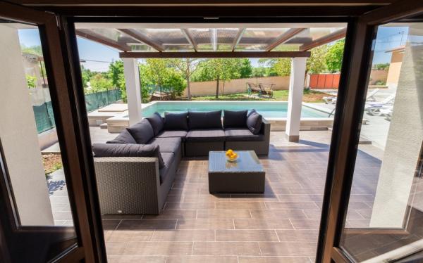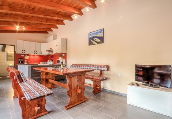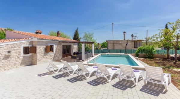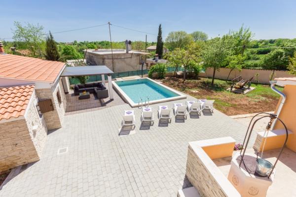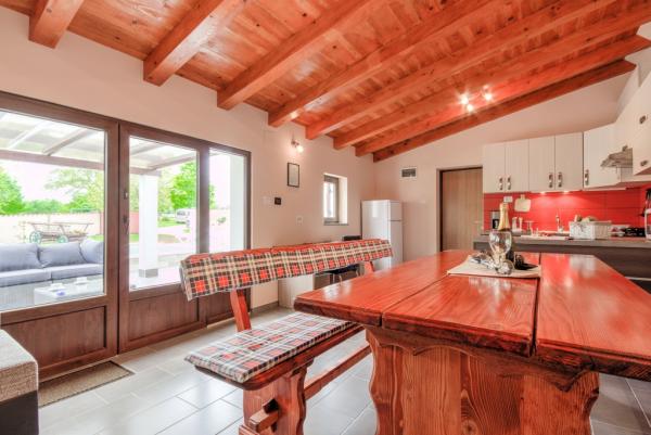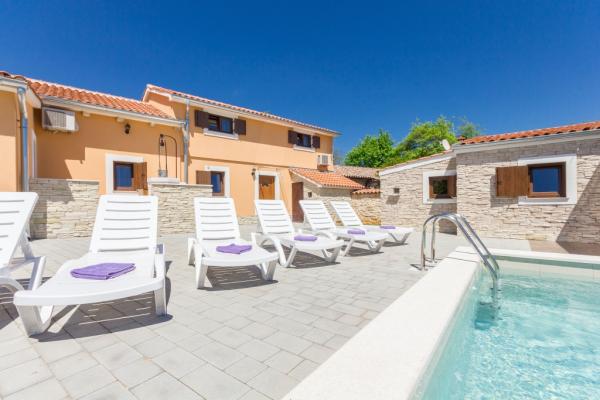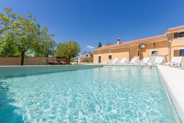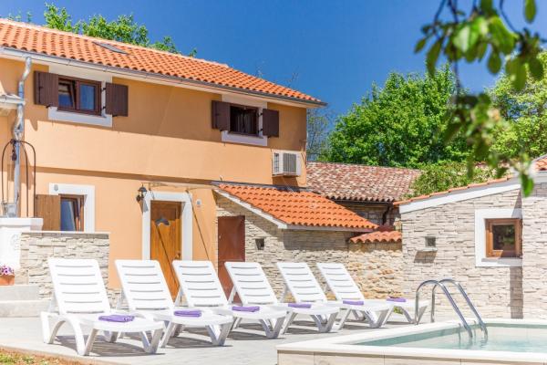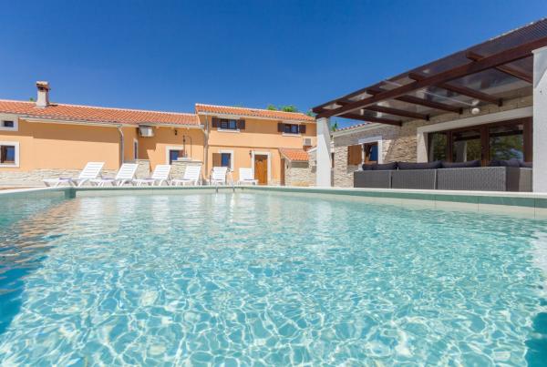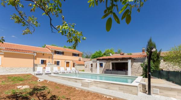La combinazione di stile moderno e tradizionale istriano sono tipici per questo 300 anni edificio, che si estende su 700 metri quadrati. Villa Benic si trova nel villaggio di Burgenland in Žminj - cuore dell'Istria. E 'circondato da distese di pascoli verdi, prati e campi che contribuiscono alla sensazione di pace e relax lontano dai rumori della città e la vita frenetica attività. E 'ideale per due o tre famiglie con bambini o un gruppo di amici. La proprietà è circondata da un alto muro che fornisce sia la privacy e la sicurezza. La casa si distingue dalla architettura esterna e il comfort e la spaziosità interna. Le tre unità abitative sono disposti soggiorno e camera da letto e un bagno, una unità separata fa ampio soggiorno con cucina e camino adeguata per incontri, cene e intrattenimento. Piscina all'aperto offrirà un rinfresco durante i caldi mesi estivi, e in ombra sul terrazzo, si trova il proprio posto per riposare e rilassarsi. La casa si trova nel luogo da dove il 30 minuti a raggiungere la spiaggia, il mare e le più importanti centri turistici istriani, come Rovigno, Parenzo, Albona e Pola. Nella sua vicinanza sono numerose piste ciclabili, club ippico, campo da corde nonché numerose attrazioni naturali come Italia e la Grotta di Pisino
